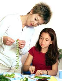 Teenagers understand that knives can cut them and fire can burn them, but in the middle of trying to make a meal basic kitchen safety may be pushed to the back of their minds. For everyone’s safety, remind teens of proper kitchen safety while you oversee a few of their first cooking experiments. Remind teens that pots should never have their handles sticking out into the kitchen, that tea towels should never be left near the stove, that scissors and knives should only be passed handles-first and that taking things out of the oven requires a pair of gloves to avoid burns. Also remind teens that hot containers need to be placed on trivets, that cleaning as you go helps keep the kitchen tidy and sanitary, that boiling water should be handled with care and that steam can burn just as badly as other forms of heat. Other safety tips will be applicable to different recipes, so don’t assume your parenting job is done after just one meal.Teenagers and Food Preparation